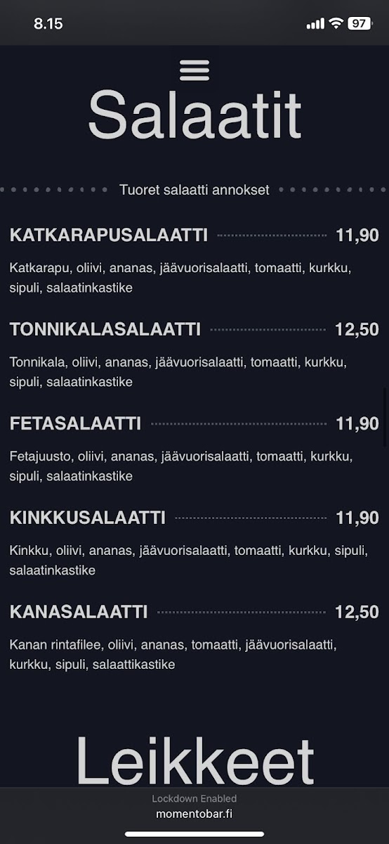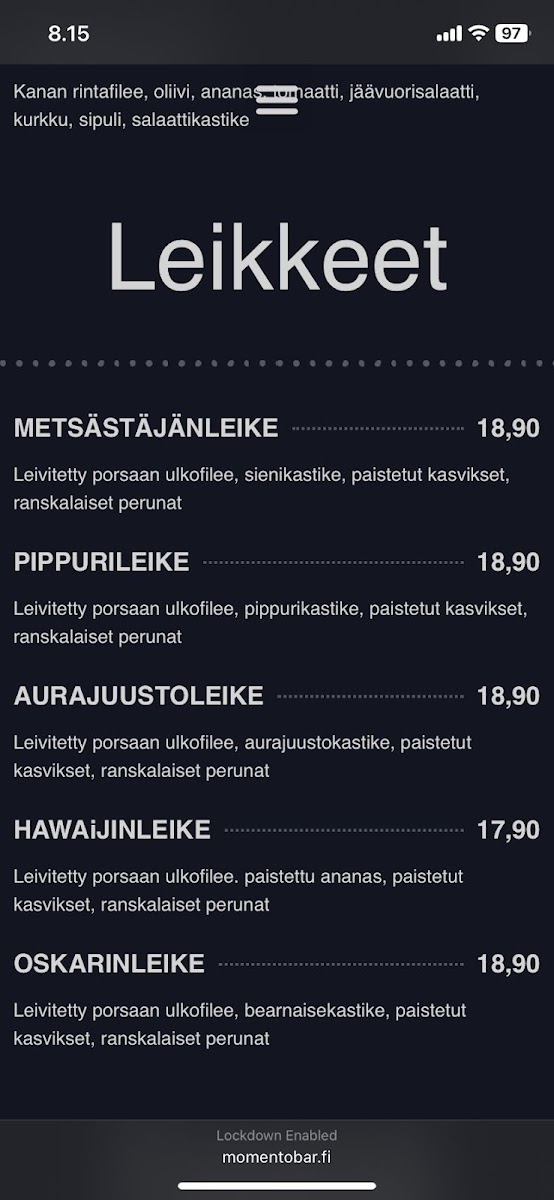 If you are in the mood for something truly satisfying, the Porsaanleike is a great option. This dish offers a tender and juicy pork cutlet, perfectly seasoned and cooked to a delicious golden brown. Each dish is thoughtfully crafted, and the variety ensures there is something for everyone at Momento Bar. With its inviting atmosphere and delicious offerings, this restaurant is an excellent choice for both casual dining and special occasions.